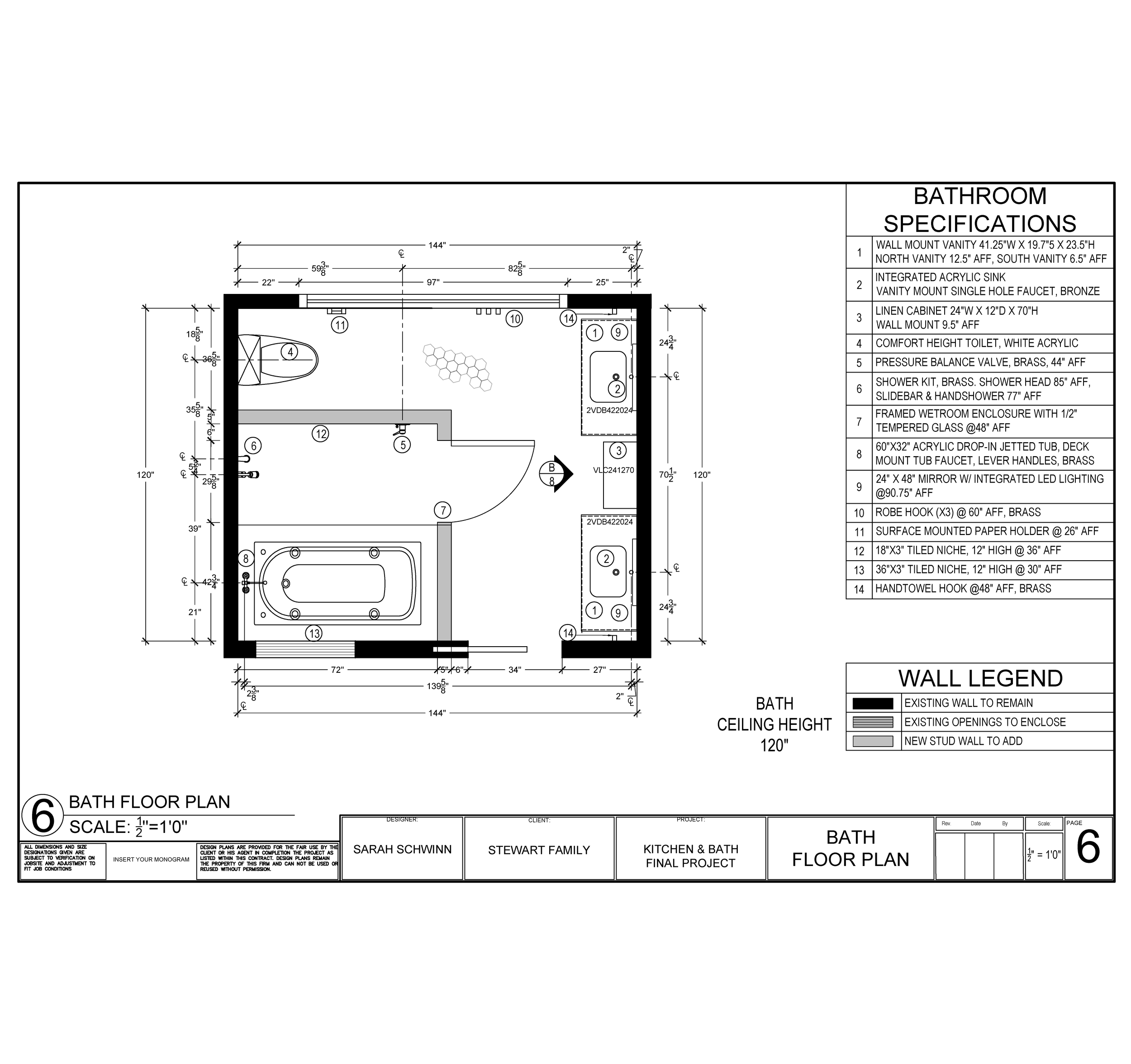 A soothing modern retreat away from it all. Requirements included jetted tub, 2-person shower, privacy around toilet, plenty of natural sunlight and separate vanities at differing heights.
